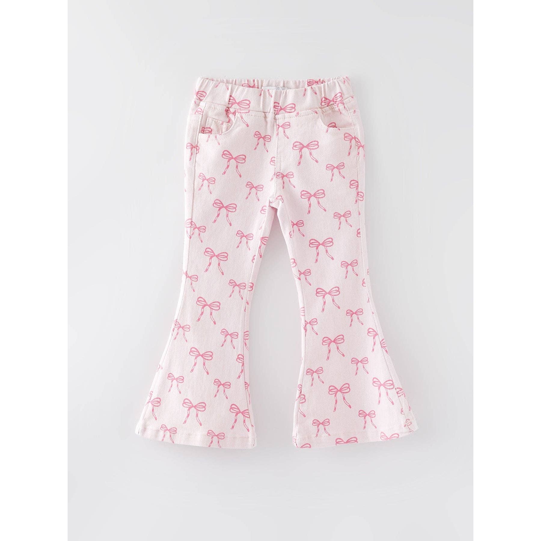 Pink Bows Elastic Flared Jeans